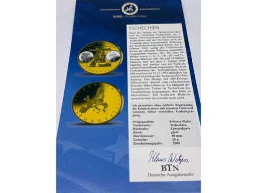 Medalie comemorativă din cupru placat cu aur și argint – modele cehe europene, diametru de 40 mm.