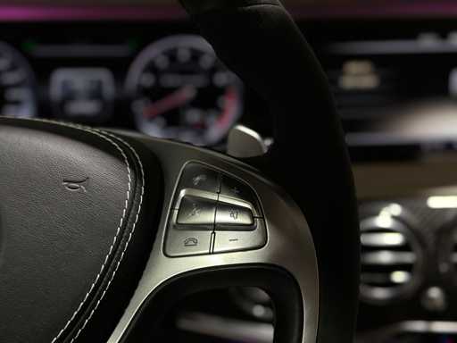Mercedes-Benz S63 AMG 4Matic Lang 5.5 V8 cu 585 CP din 2014. Mașina a fost asamblată chiar de Mercedes-Benz și folosită de fabrică timp de aproximativ 5.000 km, după care a fost adusă în Olanda de Vos Exclusive (MB Vos). Este o versiune Lang (LWB) foarte bogat echipată, cu numeroase opțiuni de lux, confort și siguranță.