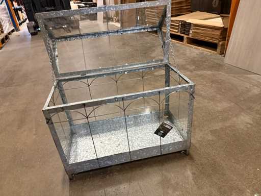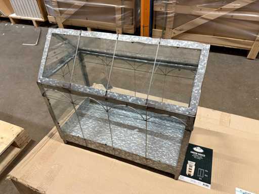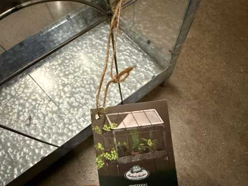 Mini dulap decorativ metalic pentru seră/terariu cu panouri de sticlă, ideal pentru protejarea sau prezentarea plantelor. Construcția din metal galvanizat conferă un aspect dur și industrial. Partea de sus este pliabilă pentru acces ușor și ventilație bună. Perfect pentru balcon, terasă sau interior ca piesă decorativă. Un obiect solid și stilat pentru orice iubitor de plante.