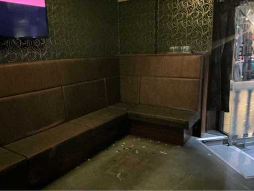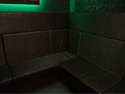 Starea: folosită. Formă de U. Lățimea dreaptă 178 cm. Lățimea stângă 240 cm. Adâncimea 77 cm. Adâncimea scaunului 48 cm.