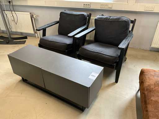 1x dulap TV 37x120x47cm (1 ușă este spartă), 2x fotoliu