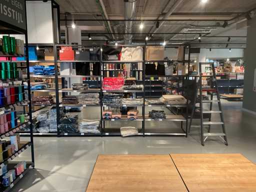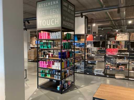 2 Mobilier de prezentare, 1 piesă de mobilier formată din 2 părți fixe de aprox. 100x222x50 cm cu grinzi intermediare și/sau rafturi, 1 piesă de mobilier de dimensiuni aprox. 106x106x222 cm, nedetașabilă, cu elevație de aprox. 106x106x100 cm.