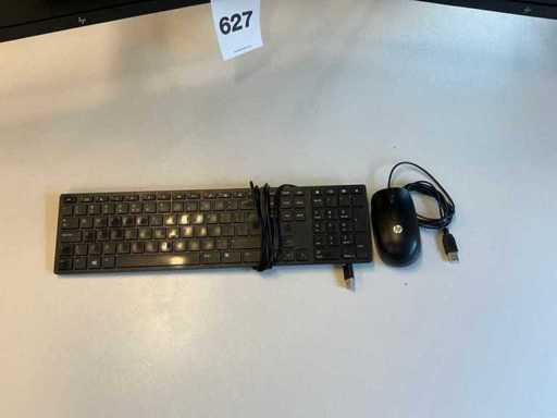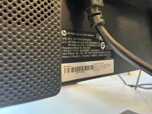 Lotul constă în 2 monitore HP E27q, 2 monitore P24h, tastatură și 2 mouse