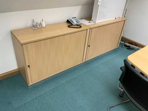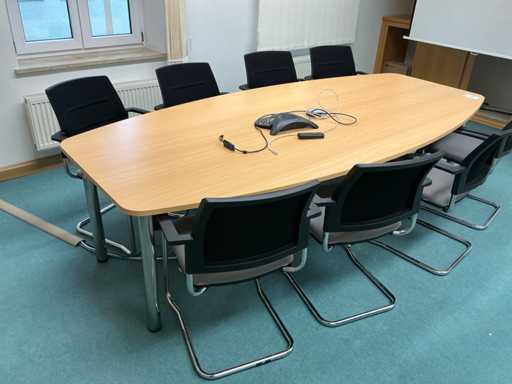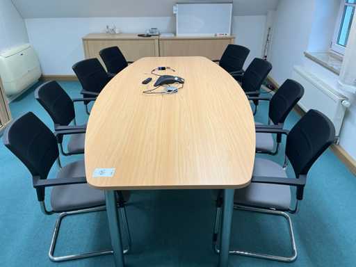 Masă de conferință, scaun 8x, dulap de dosare, masă