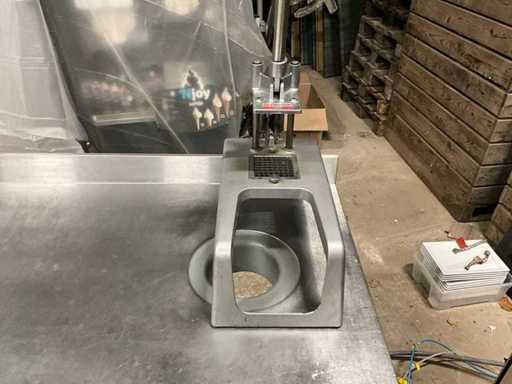 Surface de lucru dimensională cu tăietorul cartofi prăjiți; aprox. 70x140cm înălțime a paletei aprox. 89 cm