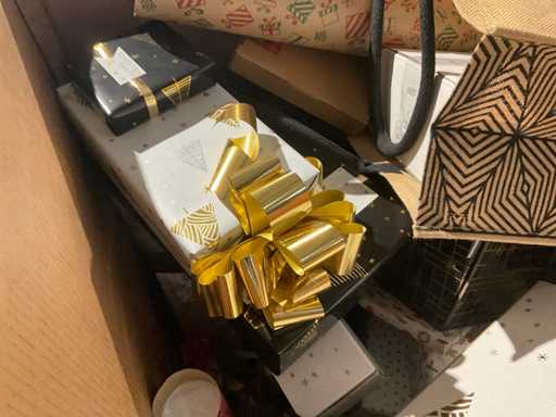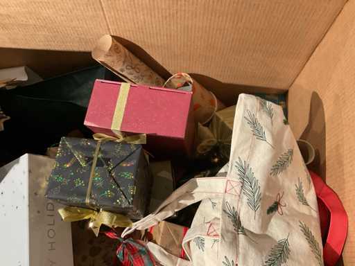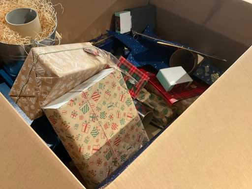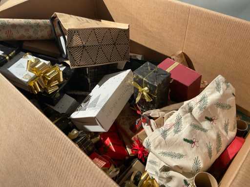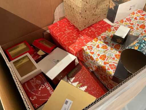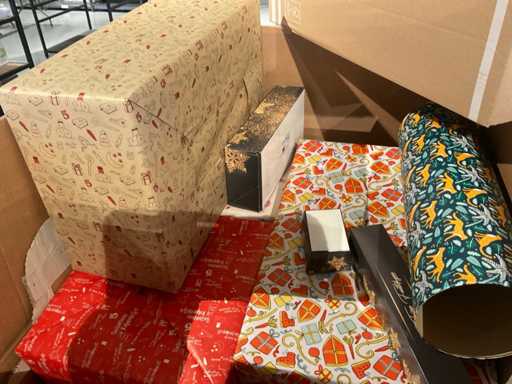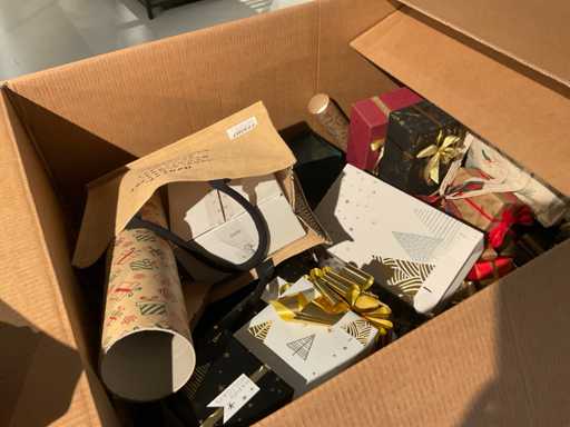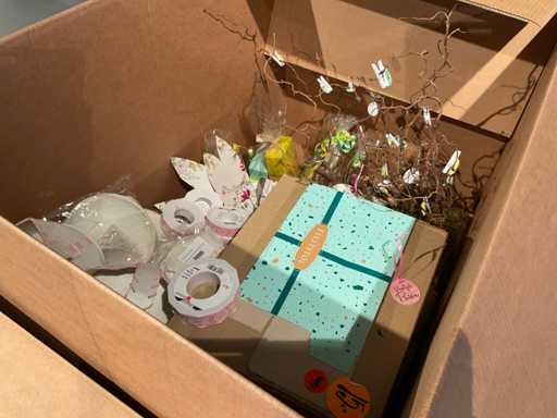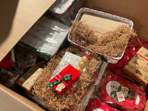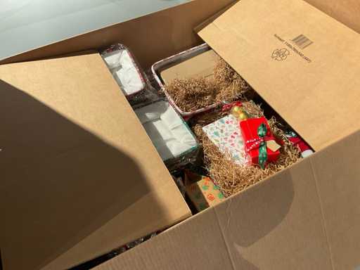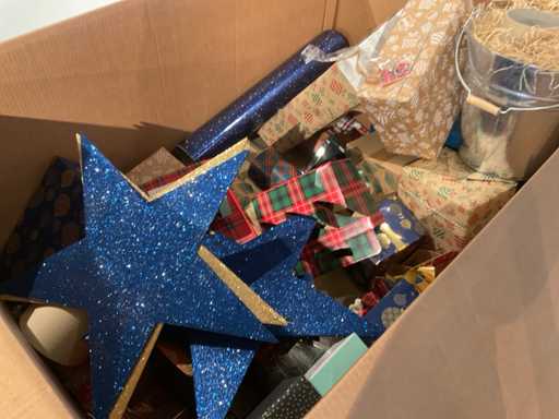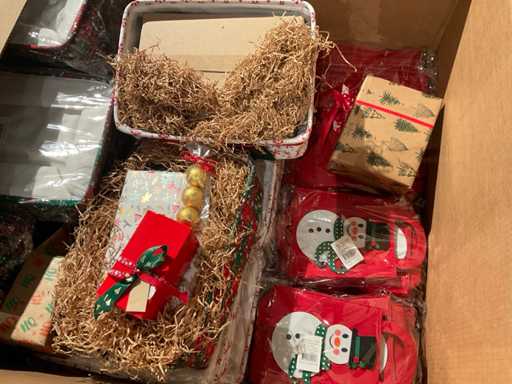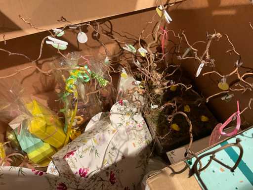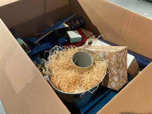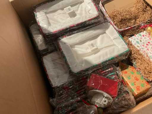 7 paleți cu cutii de paleți umplute cu diverse decorațiuni, în principal cutii ambalate goale etc., inclusiv paleți.
