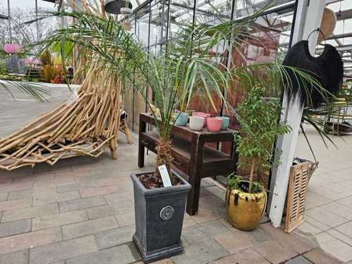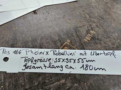 Aduceți o notă tropicală în casă sau în seră, cu acest magnific Robellini Phoenix. Curmalul pitic fascinează prin frunzele sale delicate, de un verde închis, și prin trunchiul său caracteristic, fibros. În combinație cu ghiveciul de înaltă calitate, în culoarea antracitului, al brandului Royal Garden, atrage imediat atenția pentru standardele de trai de lux și creează o atmosferă exclusivă.