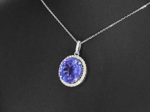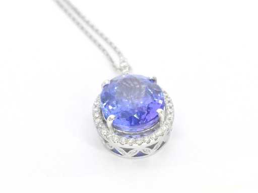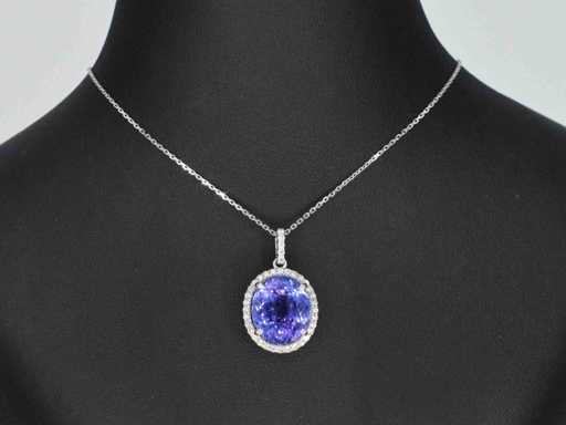 : natural; Cantitate: 50 de piese; Tăietură: Brilljant și tăietură simplă; Greutate (carate): 0,60 carate; Culoare: F; Puritate: SUA; Calitatea tăieturii: Foarte frumoasă; Piatră prețioasă: Tanzanite; Tăietură: Tăietură ovală strălucitoare; Greutate (carate): 9,69 carate; Culoare: Violet albăstrui; Puritate: Transparentă; Certificat: GIA; Numărul certificatului: 6411464243; Bijuterie: Pandantiv (inclusiv colier); Greutate: 7,3 uncii; Dimensiuni/lungime: Pandantiv: 25 x 15 mm, Lungimea colierului: 42 cm; Material: aur 18k (750); Starea: Nouă; Ambalare: Cutie de bijuterii de lux; Explicație: Calitatea a fost preluată din raportul aferent produsului. Evaluarea este o evaluare a unui comerciant certificat de diamante, bazată pe prețurile pentru consumatori; Preț pentru consumatori: € 24.500