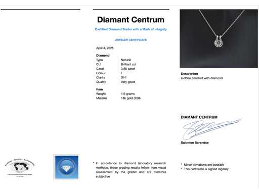 cu brio Diamant: natural; Cantitate: 1 bucată; Tăietură: Tăietură genială; Greutate (carate): 0,65 carate; Culoare: I; Puritate: SI1; Bijuterie: Pandantiv (excepție colier); Greutate: 1,6 uncii; Dimensiuni/lungime: 1,2 x 0,8 cm; Material: aur 18k (750); Starea: Ca nouă; Ambalare: Cutie de bijuterii de lux; Explicație: Calitatea a fost preluată din raportul aferent produsului. Evaluarea este o evaluare a unui comerciant certificat de diamante, bazată pe prețurile pentru consumatori; Preț pentru consumatori: 4.840 €
