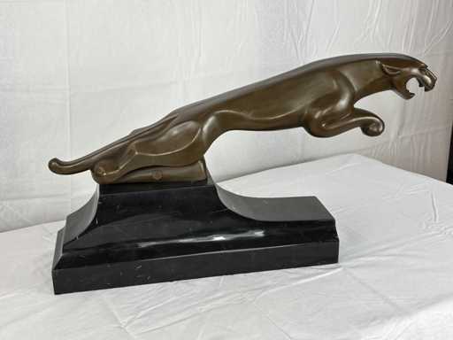 pantera din bronz; Echipat cu bază de marmură