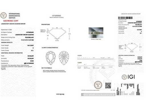 Pereche identică de diamant peră de 2,12 ct total - 2 diamante de 1,06 ct - D/VS1 (certificat IGI)