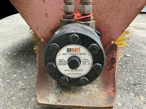 Dimensiuni totale: 255cm lățime, 140cm lungime, 120cm înălțime. Dimensiunea periei de măturat 240cm x 30cm. Echipat cu: conexiune Euro, conexiuni hidraulice, motor acționat hidraulic, reglare lățime, picior de sprijin, roți de susținere, colector (liber în fotografie). Operațiune necunoscută.