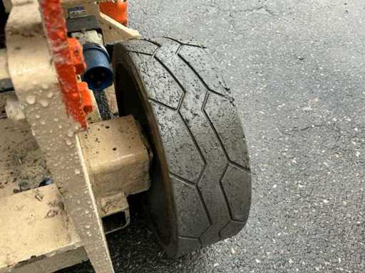 Echipat cu: anvelope din spumă, dop 230v, control în cutia de marfă, platformă extensibilă, oprire de urgență, protecție la capăt