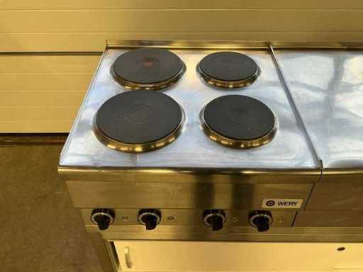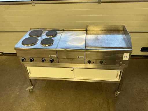 Mobilă, echipată, printre altele, cu placă, 4 arzătoare, spațiu de depozitare. Conexiune 400v