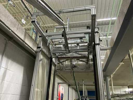 - Equipped with motor-driven overhead spindle rail for supply and removal.