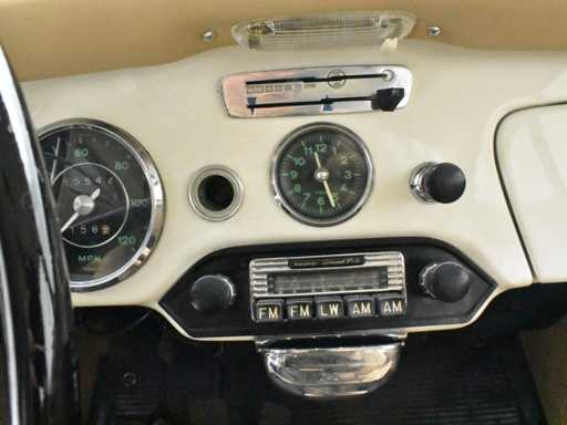 The notchbacks actually started out from the factory as cabriolets. The first built 1961 Karmann notchback T5's were Reutter cabriolets that had hard tops welded on permanently. A total of 2290 of these cars were built. These were the very first Porsche's built by Karmann, but were not badged on the right side fender until the T6 models. The unique "Karmann hardtop" or "notchback" 356 B model was produced in 1961 and 1962. The 1961 production run was essentially a cabriolet body with the optional steel cabriolet hardtop welded in place. The 1962 line (T6 production) was a very different design in that the new T6 notchback coupé body did not start life as a cabriolet, but with its own production design—In essence, part cabriolet rear end design, part T6 coupe windshield frame, unique hard top. Both years of these unique cars have taken the name "Karmann Notchback". This particular Notchback with chassis number 202199 was built January 3rd, 1962 and was the first built in that year. Of this series, only 55 cars are still believed to exist. Fitted with 1600s 75 HP engine with number P705906. This beauty is in a bone white color and has a Napa leather Luxor beige interior with beige bouclé carpets.