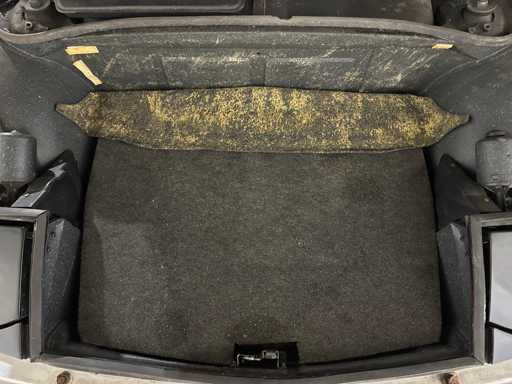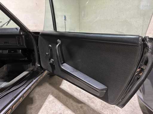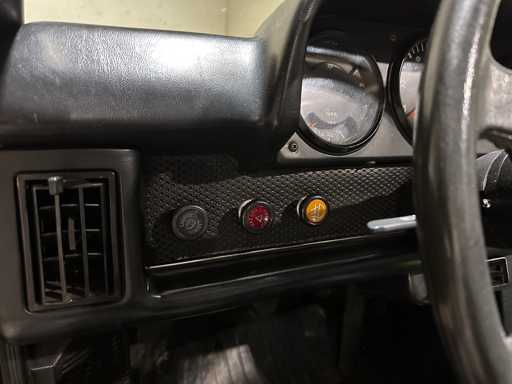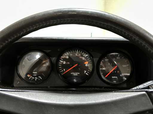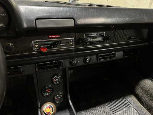 Echipat cu radio Blaupunkt, consolă centrală cu manomètre, jante originale din aluminiu, bare de protecție cromate și panou spate cu inscripție Porsche.