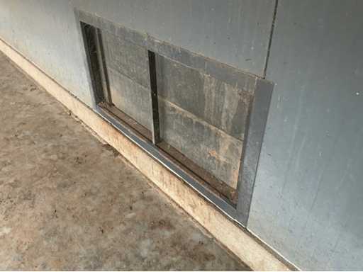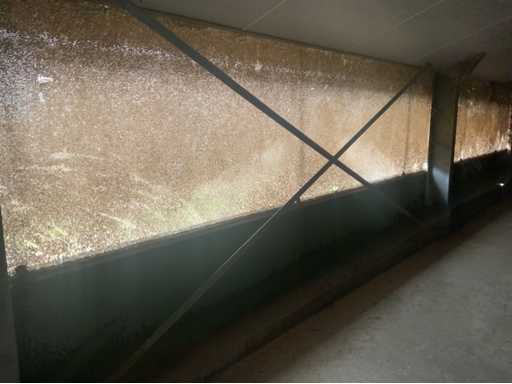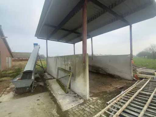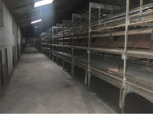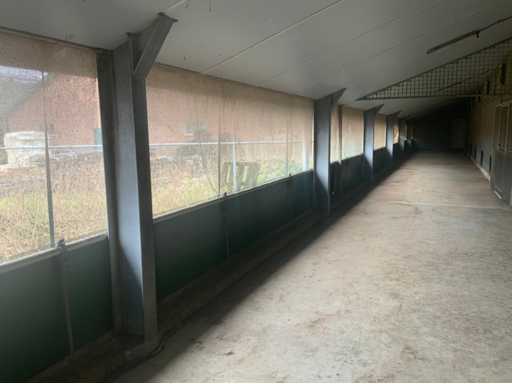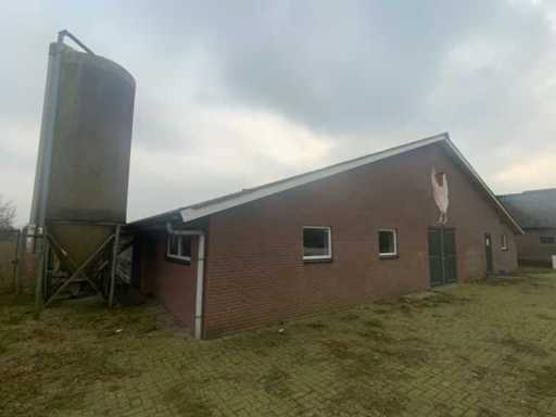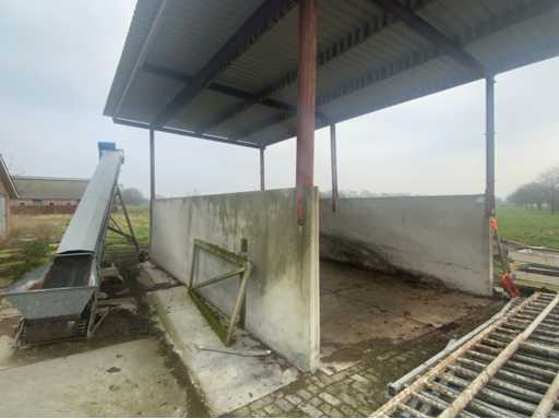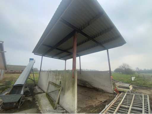 Dimensiuni: înălțime jgheab: 240cm, înălțime creastă: 620cm, lățime: 18,70m, lungime: 49,60m. Complet cu conținut, bandă exterioară de ridicare a gunoiului de grajd, zonă de colectare și silozuri
