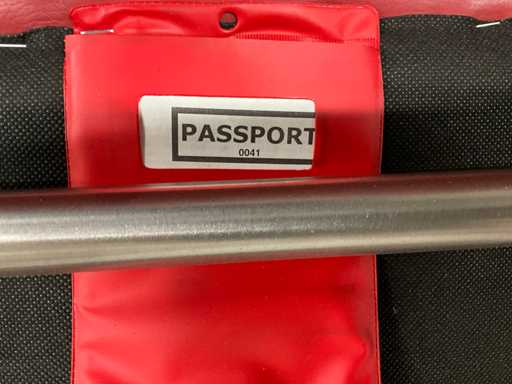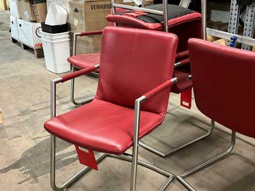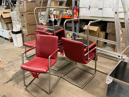 Pe picior de sanie din oțel cromat; cotiere; șezut și spătar din piele vișinie;