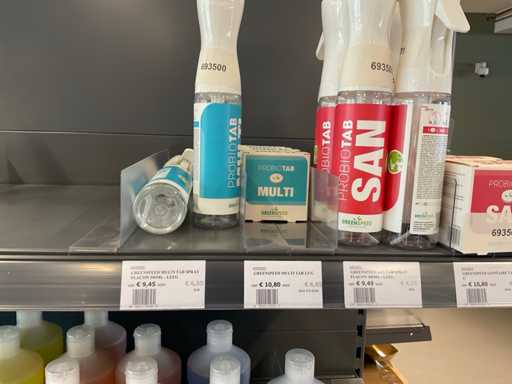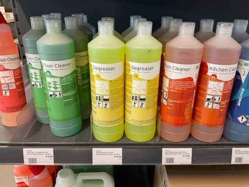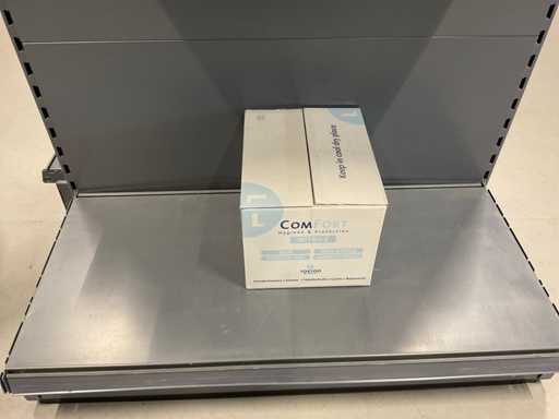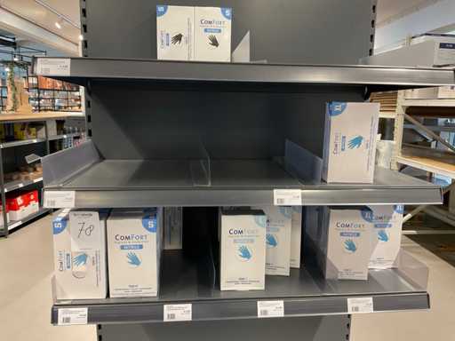 Conținutul 1 laturi a 2 rafturi, diferite dimensiuni de mănuși din nitril fără pulbere, agenți de curățare, cu excepția raftului