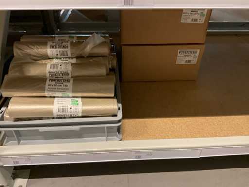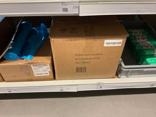 Conținutul a 1 latură a raftului constând din pungi de polietilenă, saci de gunoi, cu excepția raftului
