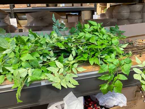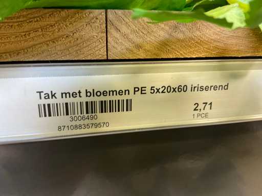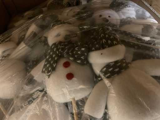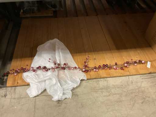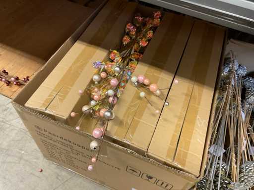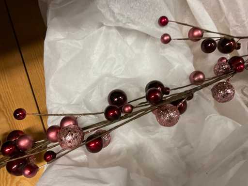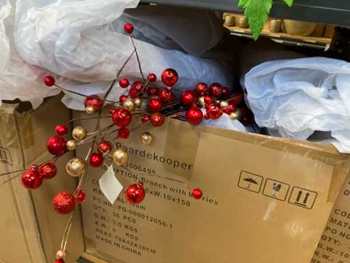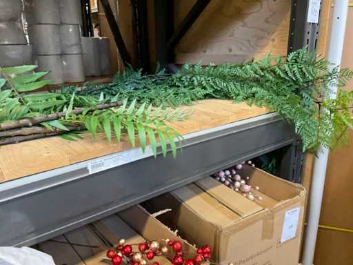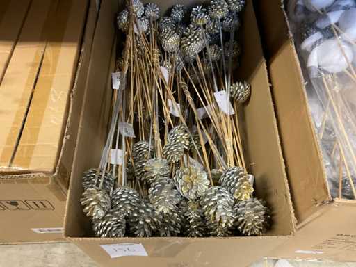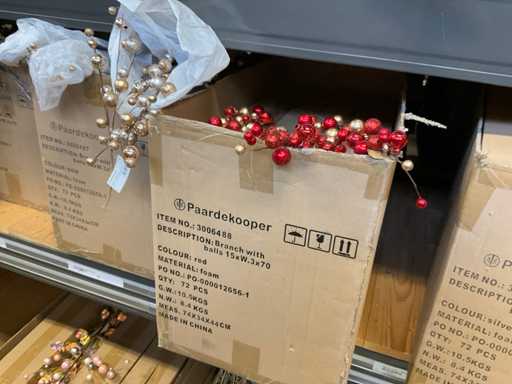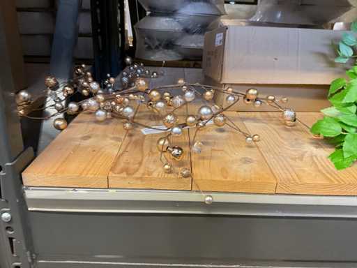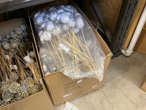 Constând din ramuri cu bile, conuri de pin și oameni de zăpadă pe bețe și ramuri de frunze, toate în 3 compartimente de rafturi.