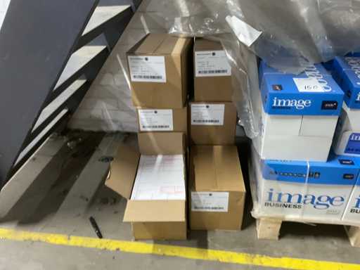 Constând din: (13x) cutii de hârtie de tipar Antalis, (8x) cutii cu formulare de butoane, (5x) lăzi din plastic.