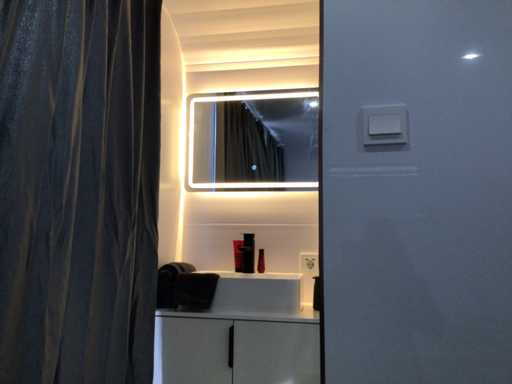 sală sanitară cu duș; toaletă; chiuvetă cu robinet mixer și dulapuri de bază; oglindă cu iluminare cu 3 opțiuni; ventilator; prize de perete de 220 volți cu conexiune USB; Lumină LED de tavan; 2 bucăți de ferestre cu deschidere superioară cu jaluzele și plasă anti-țânțari; Perdele; cutia cu spațiu de depozitare; RCD; depozitare în dulap; (cu excepția accesoriilor) Configurația poate fi ușor diferită față de ceea ce este arătat în fotografii. Tipul subiectului-B