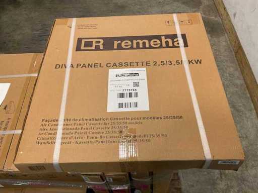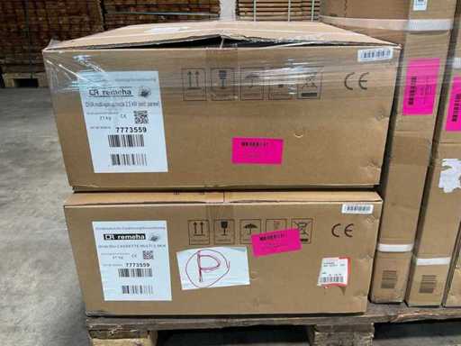 Acest palet este format din unități interioare cu casete și panouri de casetă asociate pentru sistemele de aer condiționat Remeha DIVA multi-split. Toate unitățile interioare sunt modele pe casetă pentru montarea tavanului și sunt destinate doar instalării interioare. Conținutul paletelor: 2× DIVA IDU CASSETTE MULTI 2,5 kW. Număr articol: 7773559. Tip: unitate interioară cu casetă (tavan încastrat). Aplicație: sisteme multi-split. 5× panou de casete DIVA (2,5 / 3,5 / 5 kW). Număr articol: 7775765. Tip: Panou de finisare pentru unități interioare cu casetă.
