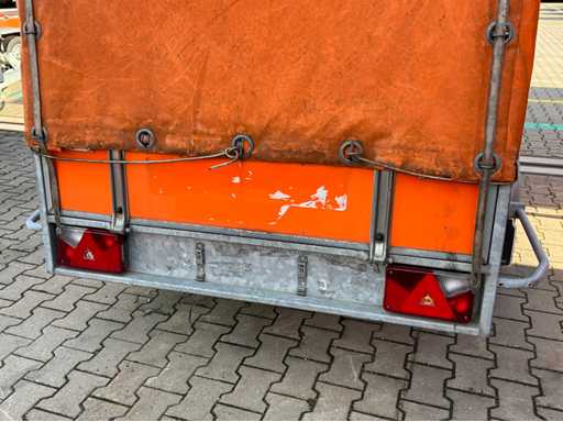 lungime 3900 mm; lățime 1800 mm; înălțime 2100 mm; remorcă cu baldachin; cort; cadru din oțel zincat; pereți despărțitori din lemn; raft pentru cap; (cumpărătorul trebuie să furnizeze un număr de înmatriculare valabil atunci când transportă pe cale rutieră; o mufă de conectare cu 7 sau 9 pini sau un adaptor cu cablu (cablul prelungitor poate fi achiziționat local contra cost); eventual bară de lumină suplimentară); fără acte de înregistrare; fără certificat de conformitate;
