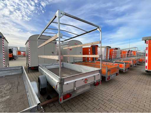 lungime 4100 mm; lățime 2050 mm; înălțime 2500 mm; Cadru din oțel zincat; echipat cu suprastructură de baldachin fără baldachin; pereți etanși din oțel zincat; roata jockeyului; frână de inerție; cuplaj remorcă blocat; fără an de fabricație; (cumpărătorul trebuie să furnizeze un număr de înmatriculare valabil atunci când transportă pe cale rutieră; o mufă de conectare cu 7 sau 9 pini sau un adaptor cu cablu (cablul prelungitor poate fi achiziționat local contra cost); eventual bară de lumină suplimentară); Documente de înregistrare germane; certificat de conformitate; (K-KQ4200)