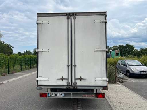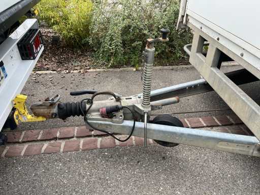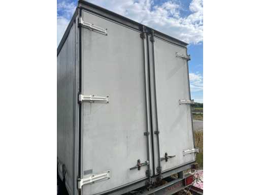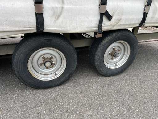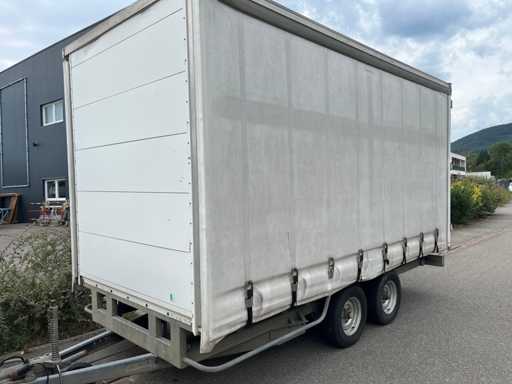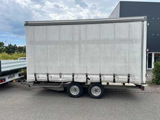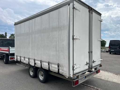 Remorca cortină Chevalier 4,5×2,1×2,2 m. Greutate la gol 1,2 t, GVW 2,5 t. Structură din oțel galvanizat, prelată glisantă impermeabilă. O stare generală bună.