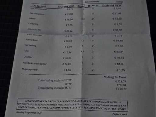 Pentru cumpărătorii olandezi și cei din afara UE, Rest-BPM este deasupra sumei ofertei. BPM-ul restului costă 1162 € și nu este inclus în prețul total la licitație. Prețul total nu include BPM. Această schemă se aplică doar cumpărătorilor din Țările de Jos și cumpărătorilor din afara UE.