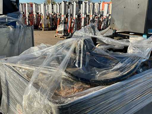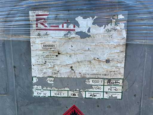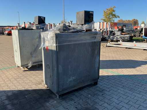 oțel zincat; capacitate 1000 litri; Şerpi; contor de nivel de umplere; echipat cu instalare Cube 56 de metri; conducte și pistol de umplere; fante pentru furci pentru stivuitor; starea de lucru neverificată;