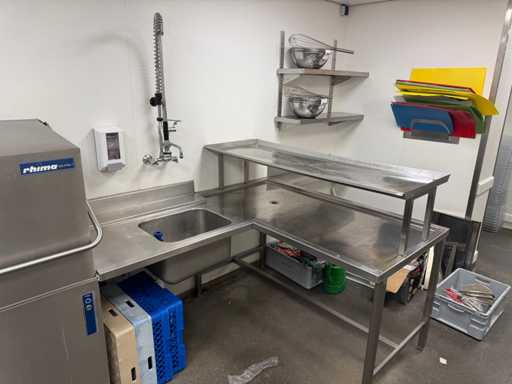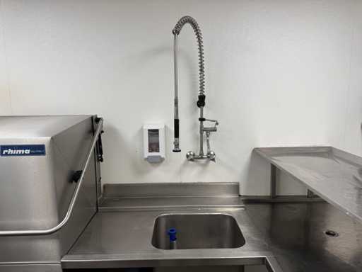 Masă de aprovizionare cu chiuvetă, duș de pre-clătire și podea de debrassare.