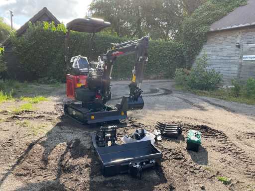 nefolosite; echipat cu: șasiu Caterpillar; șine reglabile pe lățime; iluminat de lucru; bară de protecție rabatabilă; Ecran LCD; 2x găleată excavator; găleată de înclinare; clemă; cuțit de rădăcină; Riek; trusă de scule;