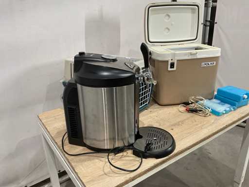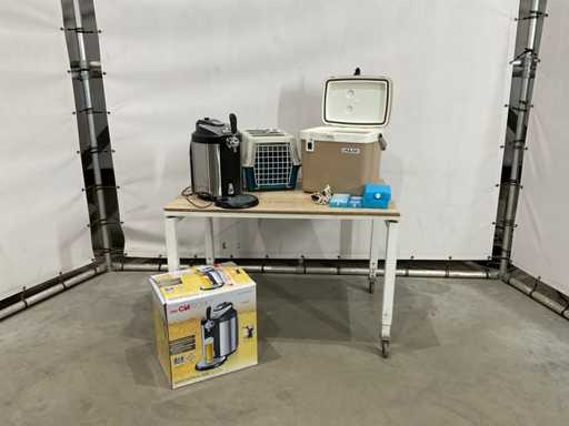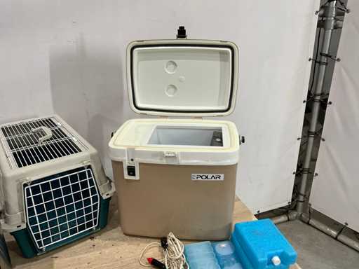 lotul constă din robinet de bere; coș de transport pentru pisici; Cutie frigorifică electrică cu pachete de gheață