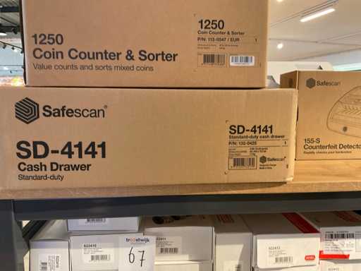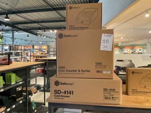 Contorul și sortatorul de bancnote Safescan 1250 și detectorul de bancnote contrafăcute 155-S și sertarul de numerar SD-4141