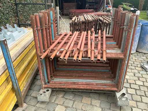 59 pieces rack 1m30 width at 1m20 high 55cm in between for the shelf with 10 pieces for backrest / security railing shelves 10 pieces (3 meters) and 21 bases / stabilization legs. With 20 floors.