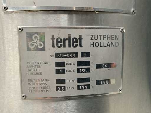 Schimbătorul de căldură Terlet a răzuit cu carcasă interioară/exterioară. Capacitate interioară a carcasei: 34 litri. Capacitatea carcasei exterioare: 190 litri. Motor electric SEW: 11kW.