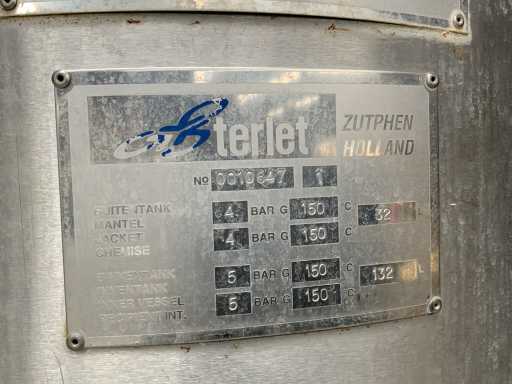 Schimbătorul de căldură Terlet a răzuit cu carcasă interioară/exterioară. Capacitate interioară a carcasei: 32 litri. Capacitatea carcasei exterioare: 132 litri. Motor electric SEW: 11kW.