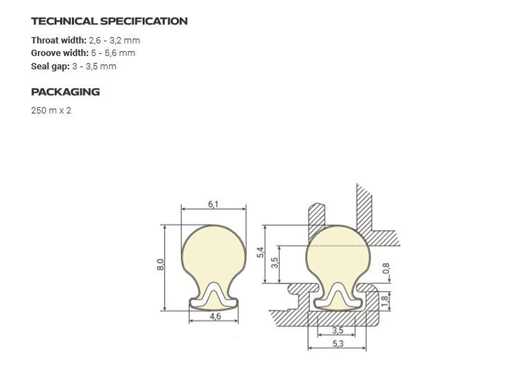 Spațiu de etanșare: 3,0 - 3,5 mm