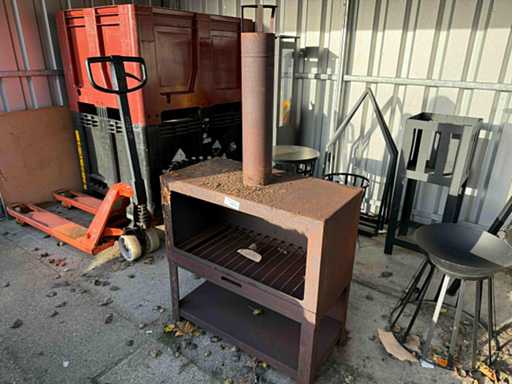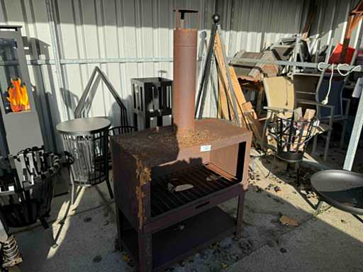 Șemineu exterior din metal rezistent, cu un aspect robust, ruginit, care se potrivește perfect în orice grădină sau terasă. Camera deschisă a cazanelor oferă suficient spațiu pentru bușteni și creează un spectacol atmosferic de flăcări. Datorită țevii înalte, fumul este evacuat frumos în sus. Jos există spațiu suplimentar pentru depozitarea lemnului. Vă rugăm să rețineți: șemineul prezintă rugină clară, dar acest lucru îi conferă un aspect industrial rezistent.