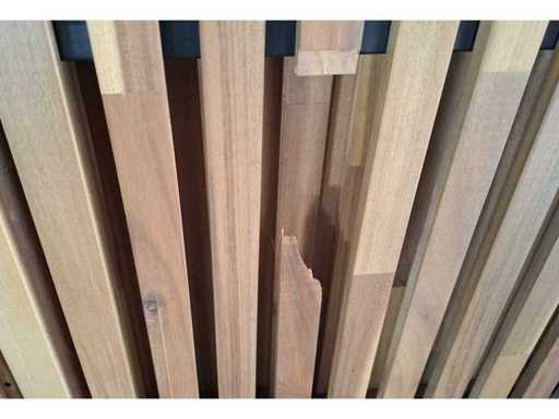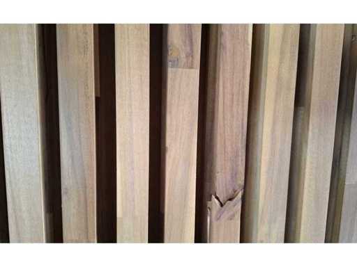 Este realizat din lemn masiv de acacia cu 3 picioare metalice de susținere pentru o rezistență suplimentară. Un separator de cameră este accesoriul decorativ perfect pentru a separa și a distinge terasa, baldachin sau living. Acest separator modern mobil din lemn din colecția noastră Normin este realizat într-o culoare frumoasă de lemn închis, care oferă imediat spațiului tău multă atmosferă și un aspect natural.