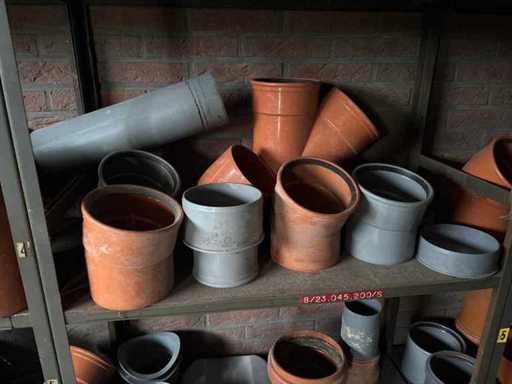 Diverse curbe și conectori din PVC, inclusiv piese drepte, piese în T și diverse țevi de canalizare, țevi și conducte de drenaj