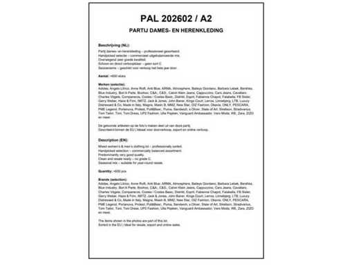 Un lot de haine pentru femei și bărbați - sortate profesional. Branduri: Adidas, Angelo Litrico, Anne Rolfi, Anti Blue, ARMA, Atmosphere, Baileys Giordano, Barbara Lebek, Bershka, Blue Industry, Bon'A Parte, Boohoo, C&A;, C&S;, Calvin Klein Jeans, Cappuccino, Cars Jeans, Cavallaro, Charles Vögele, Companeros, Costes / Costes Basic, Distrikt, Esprit, Fabienne Chapot, Falabella, FB Sister, Gerry Weber, Haze & Finn, IMITZ, Jack & Jones, John Baner, Kings Court, Lerros, Linnebjerg, LTB, Luxury Diuseded & Co. Made in Italy, Magna, Masin B, MMZ, New Star, OIZ Fashion, Okavia, ONLY, PESCARA, PME Legend, Portanova, Protest, Pull&Bear;, Puma, Sandwich, S.Oliver, State of Art, Strellson, Stradivarius, Tom Tailor, Toni, Toni Dress, UP2 Fashion, Ulla Popken, Vanguard Ambassador, Vero Moda, WE, Zara, ZIZO și altele. Obiectele prezentate în fotografii fac parte din acest lot.