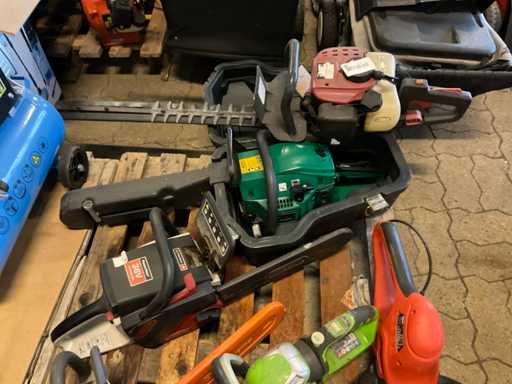 Inclusiv drujba cu baterie Oregon (fără încărcător), drujba pe benzină, mașina de tuns gard viu pe benzină, mașina electrică de tuns viu, suflanta de frunze pe benzină etc