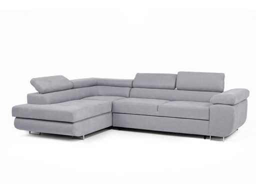tipul: Anton; mărimea L: 275 cm; L: 200 cm; canapea de colț formată din: 3 locuri, fotoliu lung, culoare: material gri; Picioare: 16; Starea: în ambalaj;