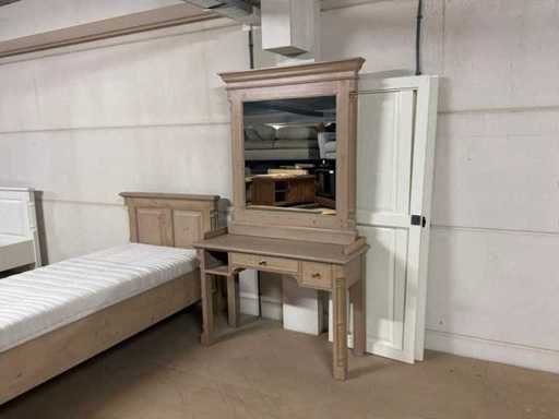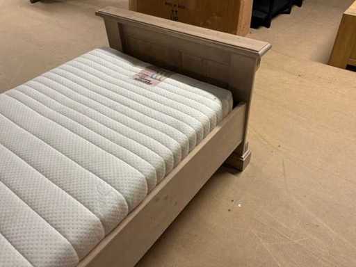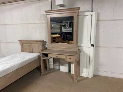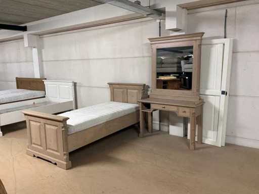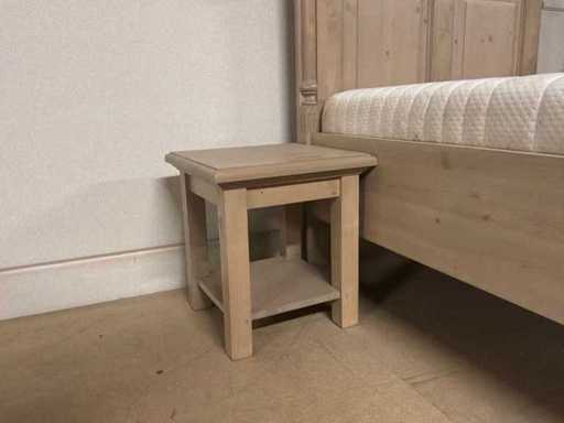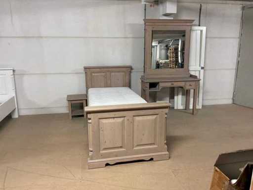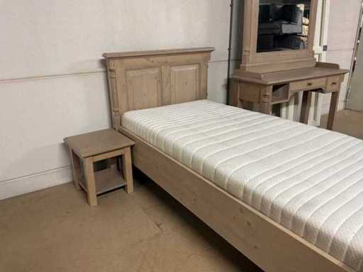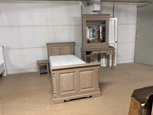 Setul de dormitor constă într-un cadru de pat cu bază și saltea cu șipci, precum și o noptieră
