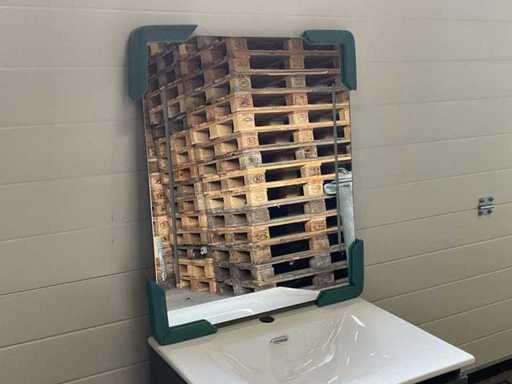 Constând din: 1x chiuvetă cu orificiu de robinet și revărsare, alb, L61xW46,5cm, 1x dulap de bază cu 2 sertare cu închidere soft, 1x dulap înalt cu 2x ușă și rafturi de sticlă cu închidere soft, 1x oglindă cu iluminat, L60xH70cm și 1x sifon Viega, tip 120 337.